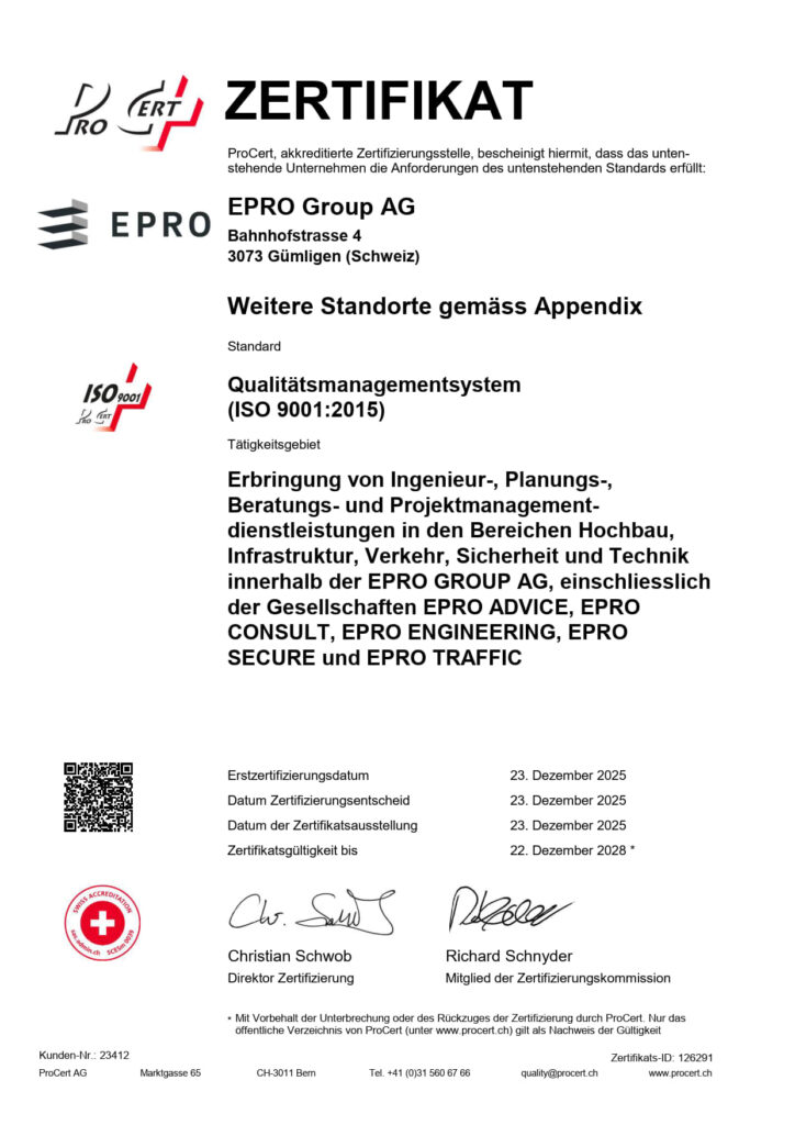 Diese gruppenweite Zertifizierung schafft eine einheitliche Qualitätsbasis und stärkt die Zusammenarbeit sowie die Verlässlichkeit unserer Leistungen über alle Gesellschaften hinweg.